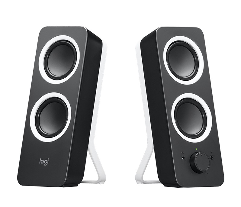 – Sonido estéreo: 10 vatios de potencia de pico/5 vatios RMS producen un sonido que llena la habitación. Cada altavoz tiene un transductor activo/con alimentación que ofrece audio de gama completa, y un radiador pasivo para extensión de graves.