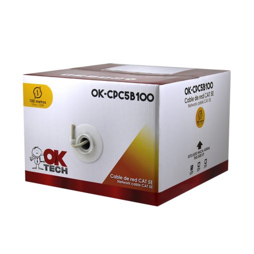 OkTech OK-CPC5B100 Bobina de Cable de Red RJ45 CAT5E UTP AWG26 100m.