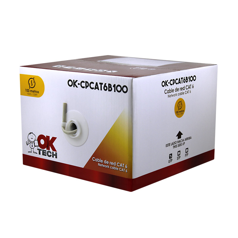 OkTech OK-CPCAT6B100 Bobina de Cable de Red RJ45 CAT6 UTP AWG26 100m.