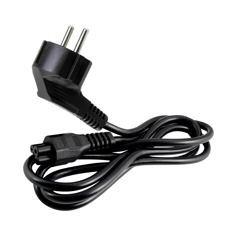 -Conector CEE7 (macho) con conexión a tierra en un extremo, y IEC C5 (macho) en el otro.