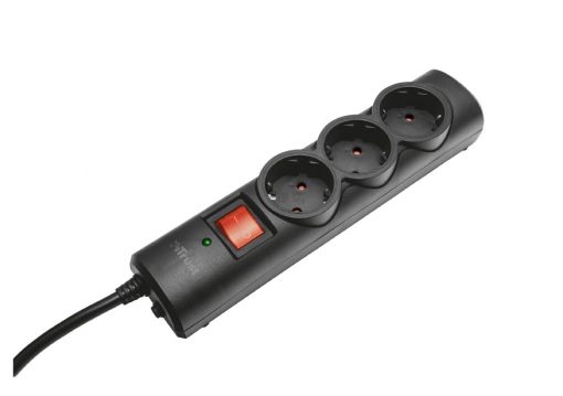Trust 21056 Regleta de 3 Tomas + Protección Surge Negra.