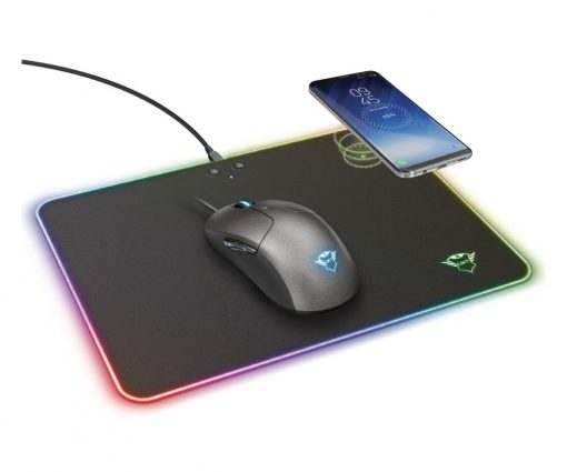 Trust 23184 Alfombrilla Ratón con Carga Inalámbrica GXT 750 Qlide RGB Negra 350×250 mm.
